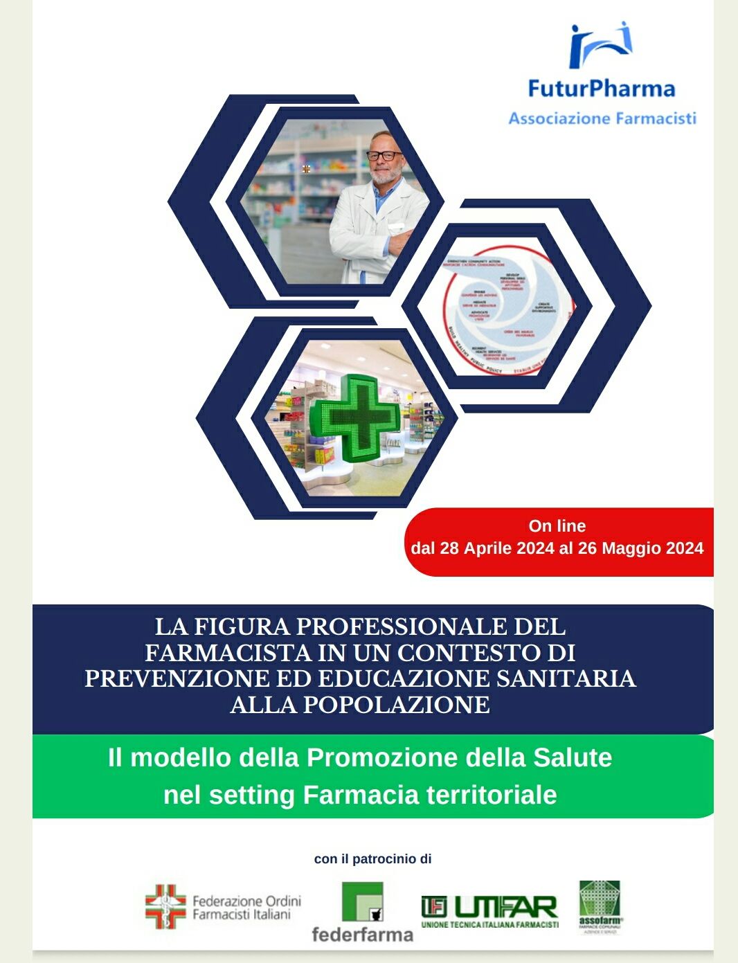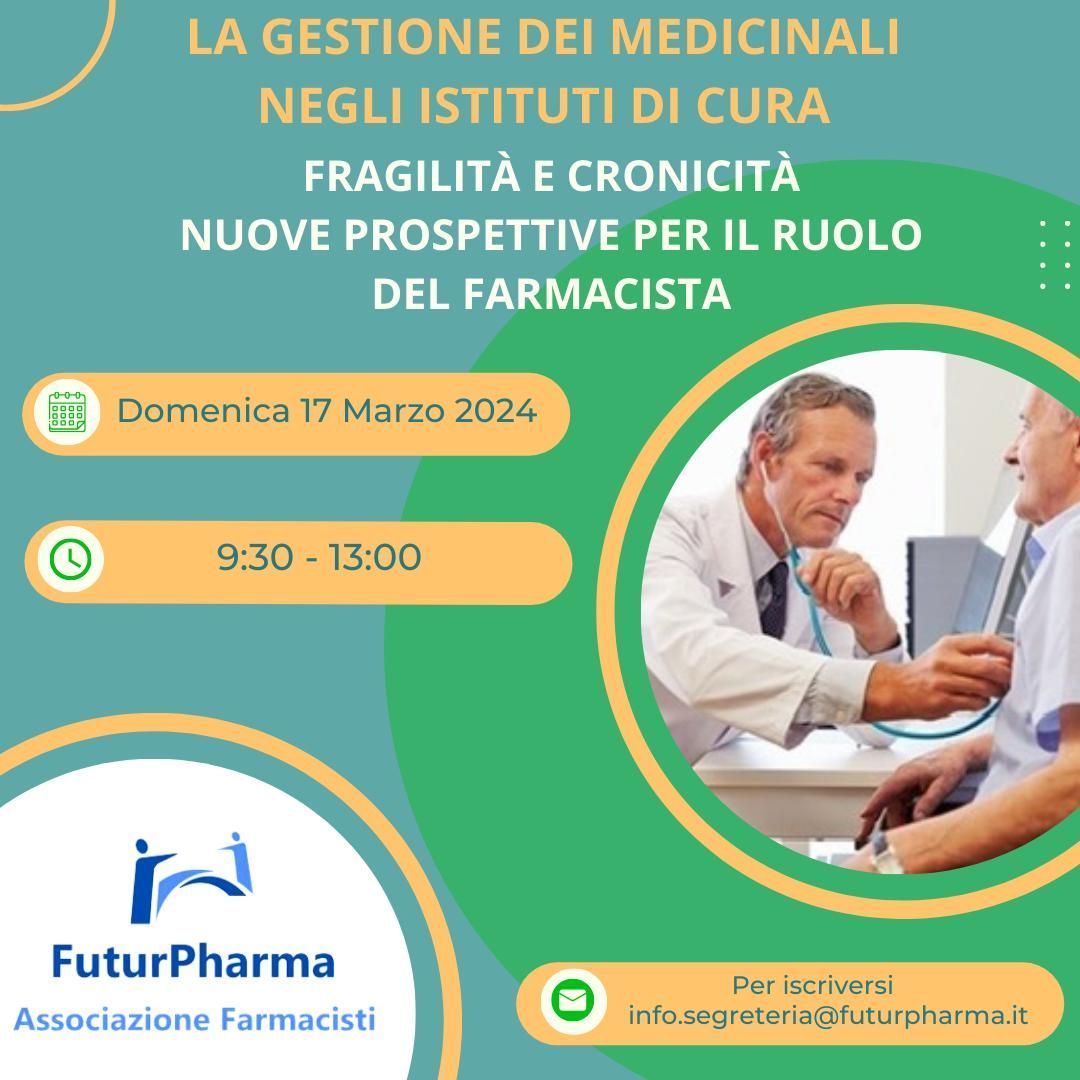 Siamo lieti di annunciare questo corso di formazione firmato dall'associazione Futurpharma, patrocinato da FOFI, Federfarma, Assofarm e Utifar, dedicato alla promozione della salute e all'educazione sanitaria! Questo corso segna un passo avanti significativo nell'elevare la professione farmaceutica, mettendo in risalto il ruolo cruciale dei farmacisti nel promuovere la salute e il benessere della comunità. È un'opportunità imperdibile per arricchire le vostre competenze professionali e diventare veri professionisti della promozione della salute. Le iscrizioni sono gratuite per gli iscritti, quindi non esitate a scrivere a info.segreteria@futurpharma.it per maggiori informazioni e per garantire il vostro posto in questo percorso innovativo! ๐๐๐ #Salute #Farmacisti #EducazioneSanitaria #Futurpharma